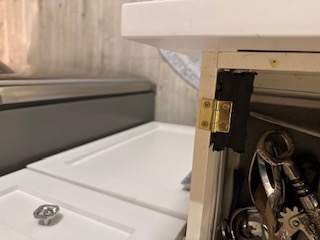 Ghost Sharpener solves this problem with a pivot-mounted sharpening assembly that attaches directly to a drawer or cabinet frame. The sharpener: